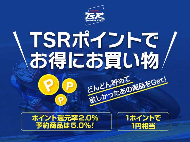 TSRオンラインショップを開設しています。レースの現場で磨かれた本物のモーターサイクルパーツ、オリジナルアパレルなど、こだわりのTSRアイテムをぜひ、お試しください。