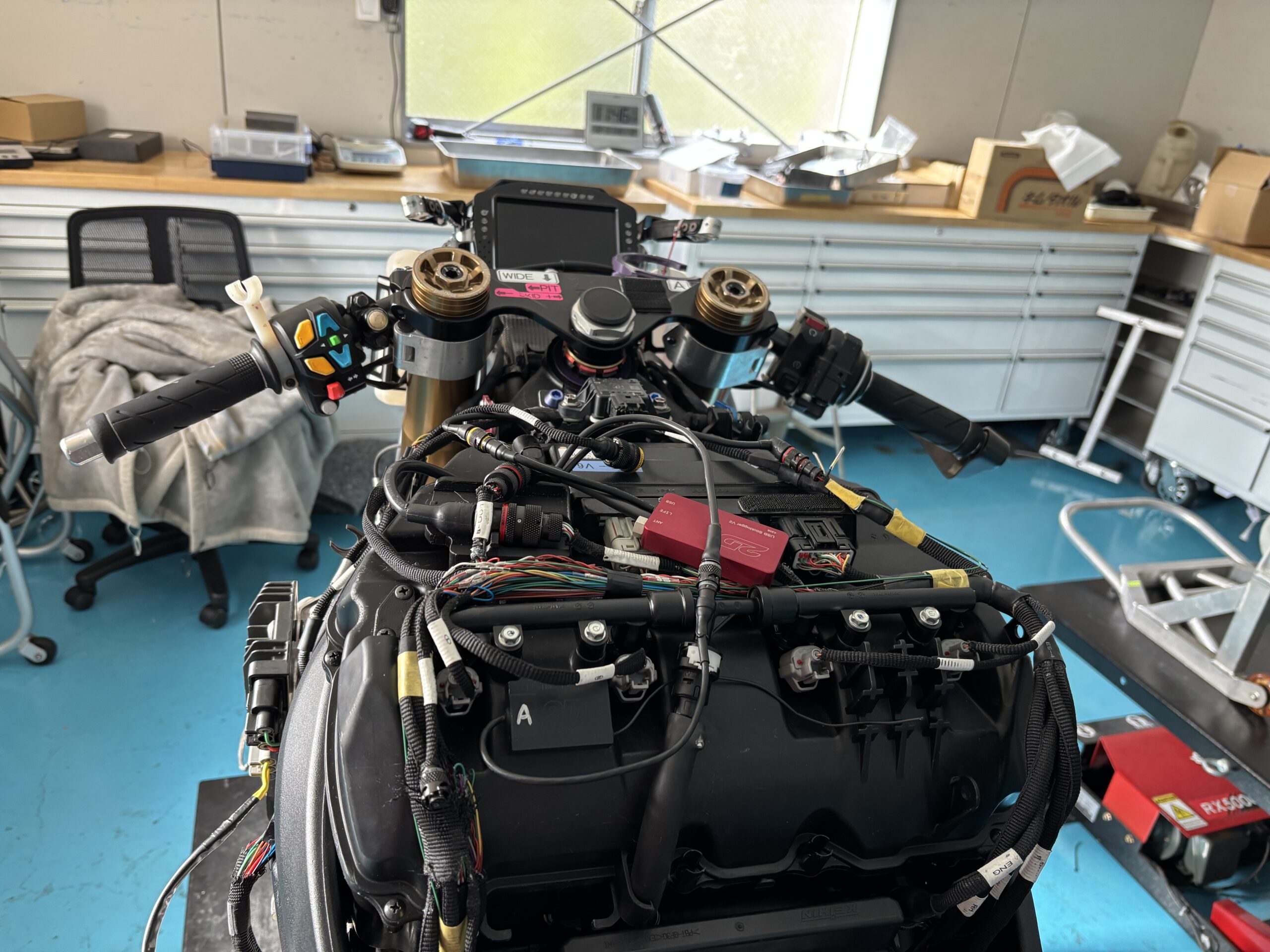昨夜、レーススタッフが「電装関連の装着確認ができました!」と